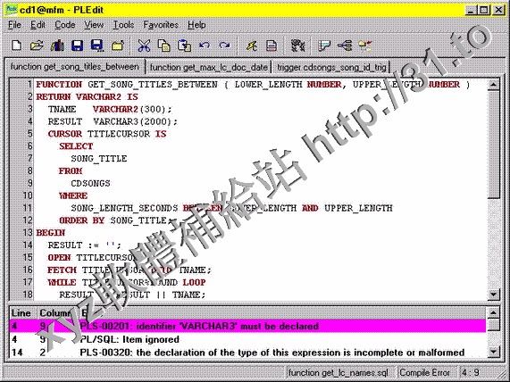 PLEdit allows editing and compiling of PL/SQL code modules