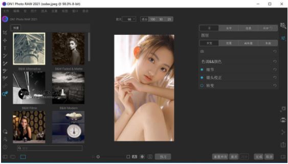 而 ON1 Photo RAW也擁有各種濾鏡,如 Skin Retouching/Dynamic Contrast/Lens