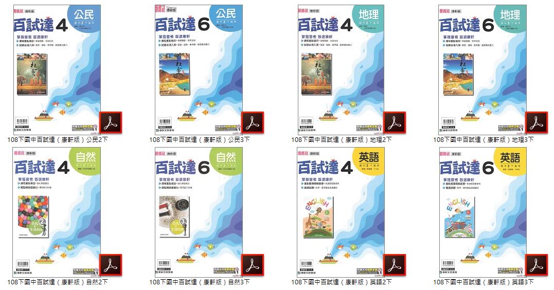 108學年下學期 國中百試達評量卷 康軒版 1-3年級 全科目 卷類光碟DVD版