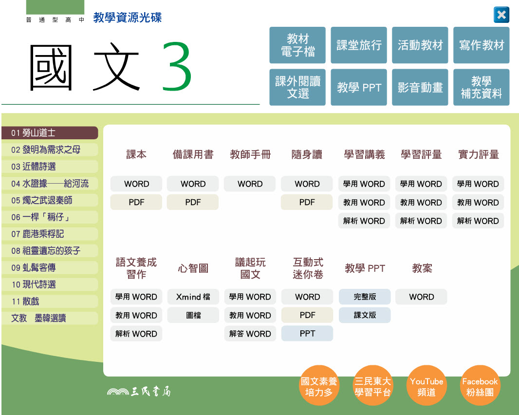 高中 三民版 國文科 2年級 教學光碟