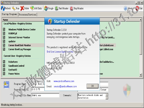 • Zards Software Startup Defender v3.2 英文正式版(系統監控軟體)