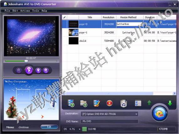 Joboshare AVI to DVD Converter是一款強大的DVD視頻製作工具,可以將AVI, MPEG, DAT, MPG,